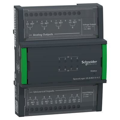 Das SpaceLogic Central IO Modul (früher bekannt als SmartX Central IO Modul) ist ein nativer Baustein der EcoStruxure-Lösung. Es bietet I/O-Punkte für den SpaceLogic AS-P Server zur zentralen Steuerung großer Gebäudeautomations-Systeme. Die Module sind Teil eines modularen Systems, das Strom und Kommunikation über einen gemeinsamen Bus für skalierbare, kundenspezifische Konfigurationen bereitstellt.