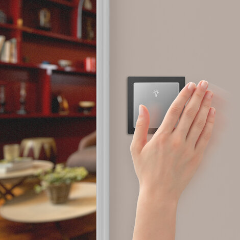Dank der Möglichkeit, den KNX Tastsensor Pro T per Geste zu steuern, kann die Beleuchtung und Jalousien bequem reguliert werden, ohne dabei den Taster mit schmutzigen oder nassen Händen berühren zu müssen. Eine geniale Kombination aus Komfort und Hygiene.