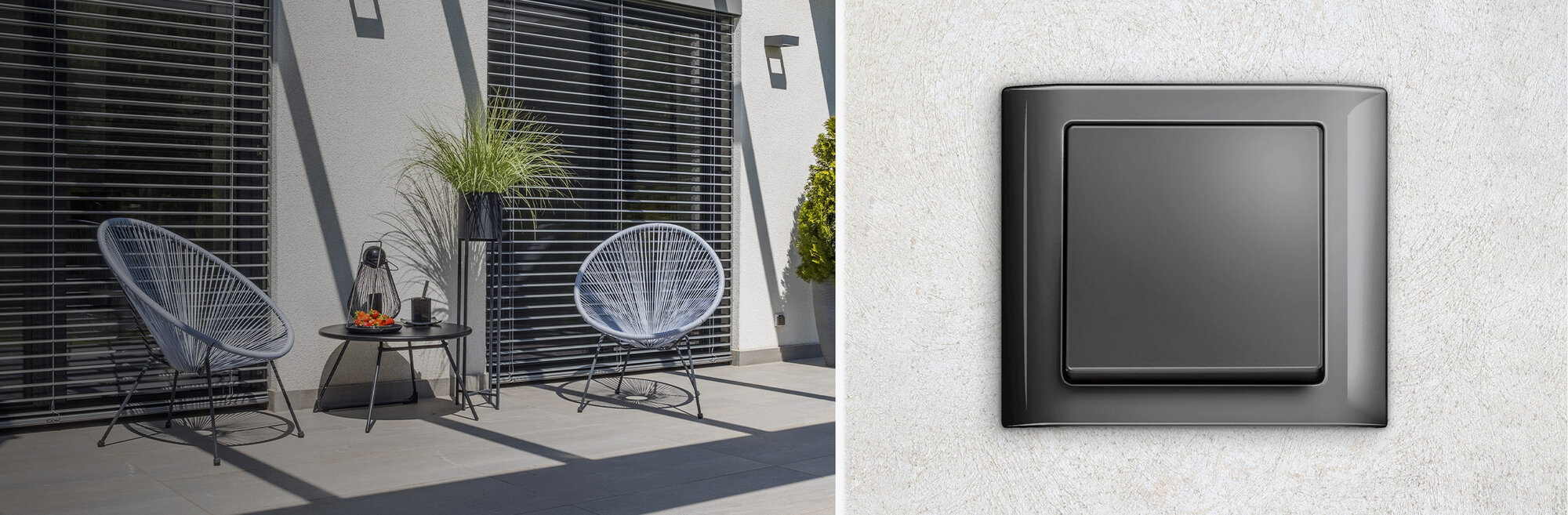 Außen schön, innen wasserdicht: Dass Zweckmäßiges auch schön sein kann, beweist Aquadesign bereits auf den ersten Blick. Stimmige Proportionen, hochwertige Oberfläche und ein geschwungener Rahmen verleihen der wassergeschützten Schalterserie einen individuellen Charakter. Typische Einsatzgebiete von Aquadesign: Außenbereiche wie Terrassen, Waschküchen oder auch Profiküchen.
