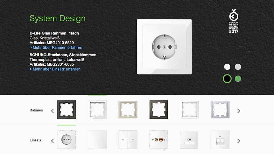 Stell hier deine Schalter aus dem System Design zusammen und entdecke Material und Funktion.