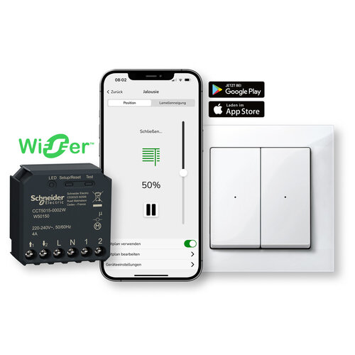 Erfahre mehr über das smarte Zuhause mit Wiser und entdecke die Produkte zur Jalousiesteuerung, die sich auf verschiedenen Wegen nachrüsten und steuern lassen – ob klassisch per Schalter, per App, Sprachassistent oder auch besonders komfortabel durch Sensoren oder Automatisierungen.