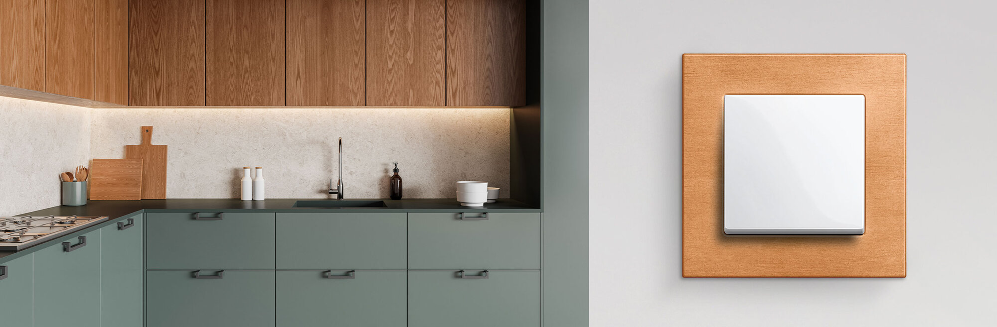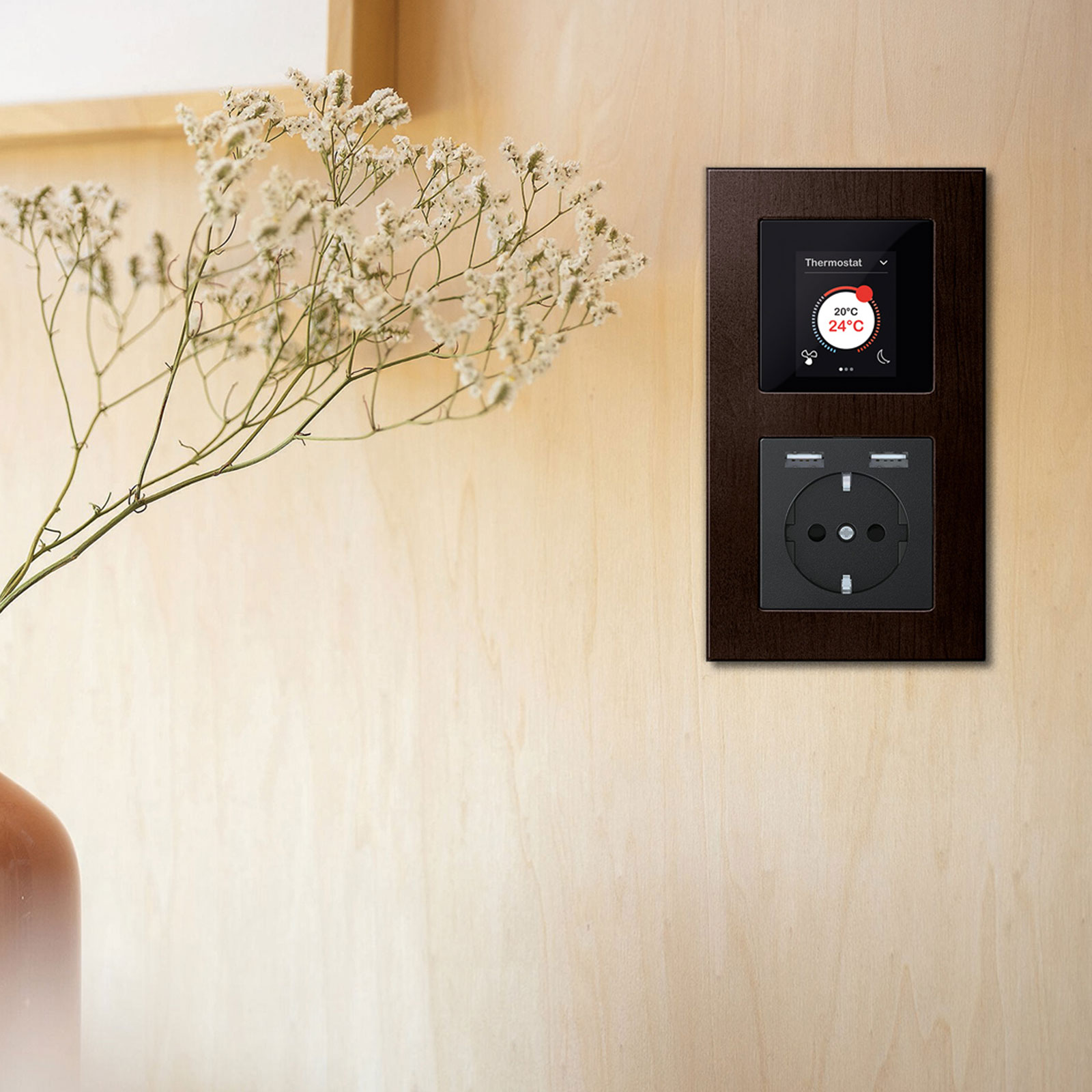In den Varianten Buche und Walnuss strahlt M-Plan Echtholz Wärme und Lebendigkeit aus und verleiht jedem Raum ein wohnliches, einladendes Ambiente. Durch die individuelle Maserung ist jeder Rahmen ein Unikat, das auf natürliche Weise Charakter und Persönlichkeit vermittelt. Das Schalterdesign lässt sich so optimal auf natürliche Wohnräume und Einrichtungsstil abstimmen.